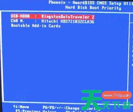 3、硬盘启动优先级(Hard Disk Boot Priority)选择:使用小键盘上的加减号“+、-”来选择与移动设备,将U盘选择在最上面。然后,按ESC键退出,回到第2步的设置界面。