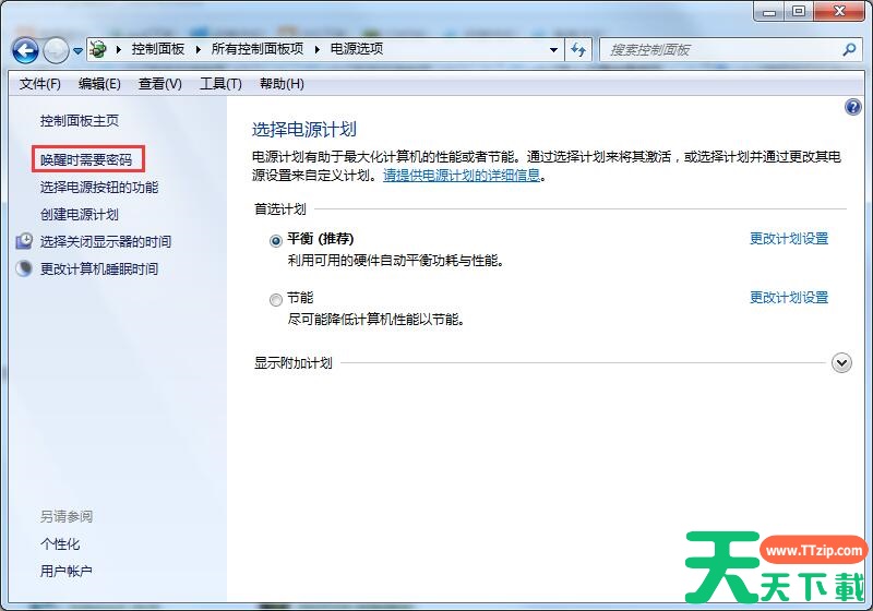 5、在左侧找到唤醒时需要密码,点击进入下一个选项;