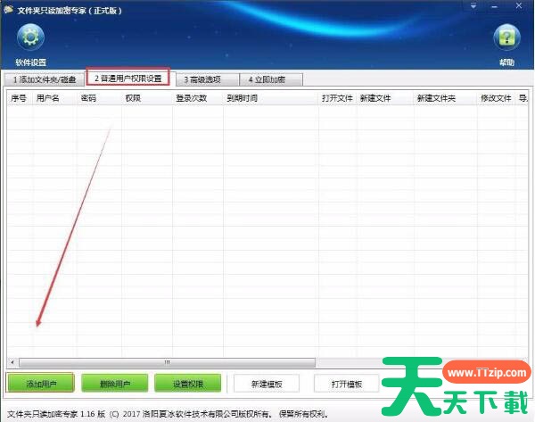 4、点击【普通用户权限设置】,点击添加用户。在弹出的页面设置普通用户账户和密码,以及设置不同的权限,然后点击确定;如图所示: