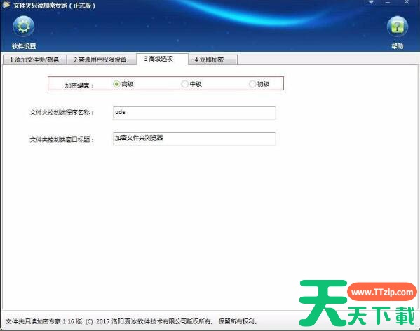 5、然后点击【高级选项】,选择加密强度;如图所示: