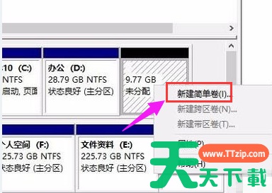 压缩完成后,会看到一个未分配的分区,右键点击,选择“新建简单卷”。