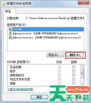 7、在组和用户名中删除其它用户名,保存系统管理员账户,点击确定,再次打开文件夹就能正常访问了。如图所示:
