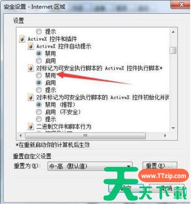 3、Internet安全设置里设置一些关于Active控件的设置,将Active控件设置为启用。如图所示: