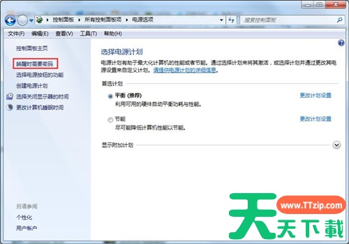 5、在左侧找到唤醒时需要密码,点击进入下一个选项;