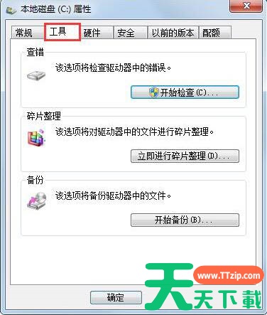 1、打开桌面上的计算机,右键点击C盘,选择属性选项,然后在弹出的对话框上方菜单栏处选择工具选项;如图所示: