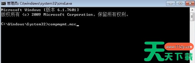 2、管理员身份打开的命令提示符窗口,输入并回车执行:compmgmt.msc 命令。
