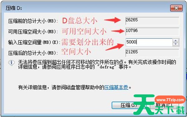 压缩完成后会出现一个可用空间,这个可用空间就是可以用来分配给其他分区的空间。
