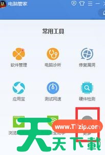 1、我们打开新版的电脑管家,选择右下发的【工具箱】选项;