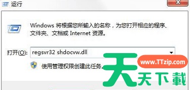 3、然后输入:regsvr32 shdocvw.dll,点击确定;