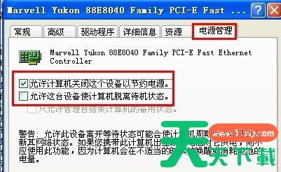 10、切换到“电源管理”,确保“允许计算机关闭这个设备以节约电源”复选框的勾是打上的,“允许这台设备使计算机脱离待机状态”复选框是未勾选的,操作完成后,点击“确定”。