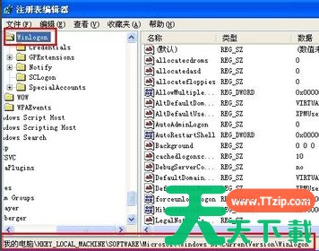 6、打开“注册表编辑器”窗口,依次展开以下路径,HKEY_LOCAL_MACHINESOFTWAREMicrosoftWindows NTCurrentVersionWinlogon。
