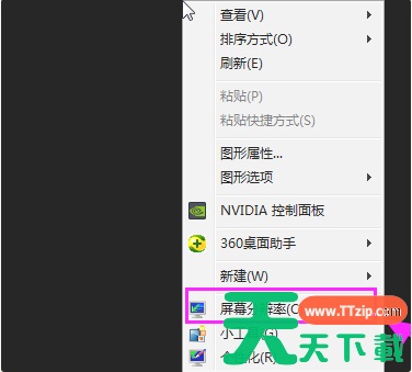 4、回到桌面,右击鼠标,选择“屏幕分辨率“。