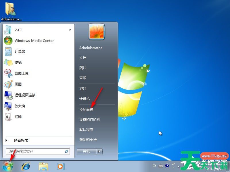 1、首先点击左下角的开始菜单-控制面板。