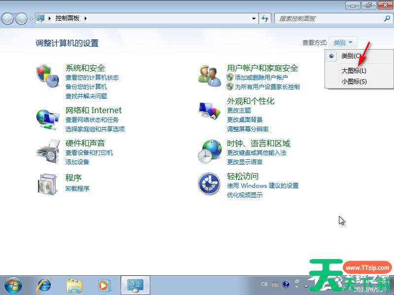 2、进入后将右上方的“查看方式”改为“大图标”即可。