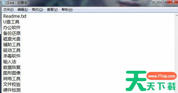 4、打开1.txt的记事本文件,其中我们就能够看到一列文件名称;