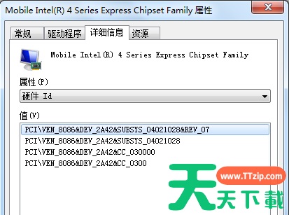 以下图为例,值为 PCIVEN_8086&DEV_2A42&SUBSYS_04021028&REV_07,则 VendorId = 8086,DeviceId = 2A42