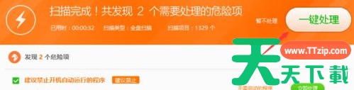 4、等待扫描完成,点击进行【一键处理】,等待扫描完成重启电脑即可。