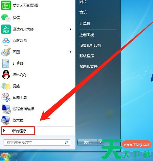 2、选择“所有程序”。