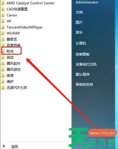3、找到“附件”,点击打开。