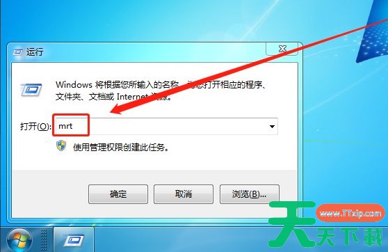 5、在窗口中输入:“mrt”,点击确定。