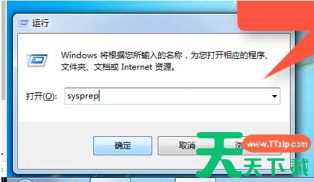 1、同时按下键盘快捷键Win+R,打开运行窗口输入sysprep 回车确定。