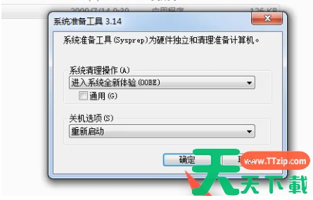 3、出现系统准备工具,在系统清理操作中选择“进入系统全新体验(OOBE)”,然后点击确定。