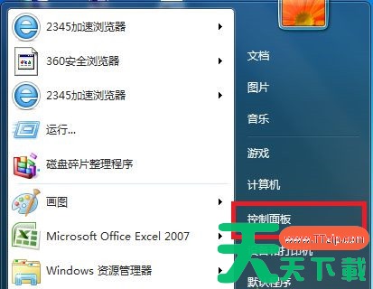 1、点击左下角的“开始”按钮打开“开始”菜单,选择“控制面板”。