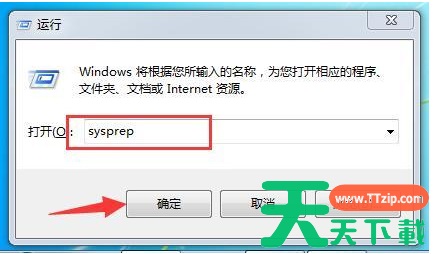 1、使用快捷键 Win+R,打开运行窗口,输入代码“sysprep”,点击确定。