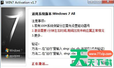 近来有不少网友询问天天下载Ttzip激活Win7系统的方法,其实现在各大网站上有很多激活工具,我们没有激活码也可以轻而易举的激活Win7系统。接下来,我就给大家介绍一下使用Win7 activation激活Win7系统的方法