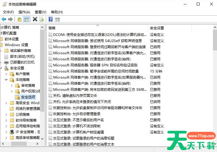 2、在组策略窗口左侧选择计算机配置,然后选择windows设置,再点击安全设置。