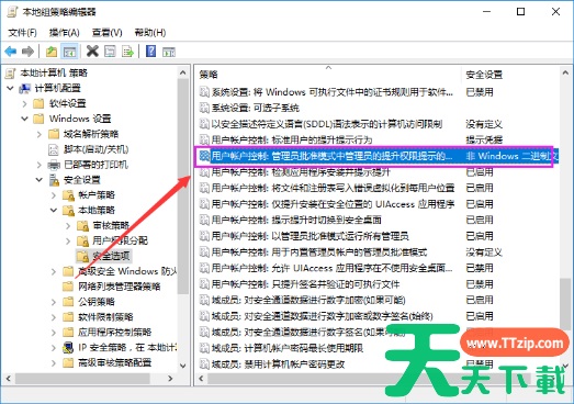 4、在窗口右侧找到用户帐户控制: 管理审批模式下管理员的提升提示行为。点击打开。