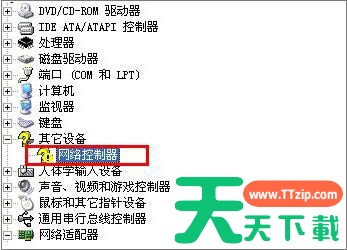 1。打开设备管理器,找到带有黄色感叹号的设备,如下所示。右键单击网络控制器并选择属性;如图所示: