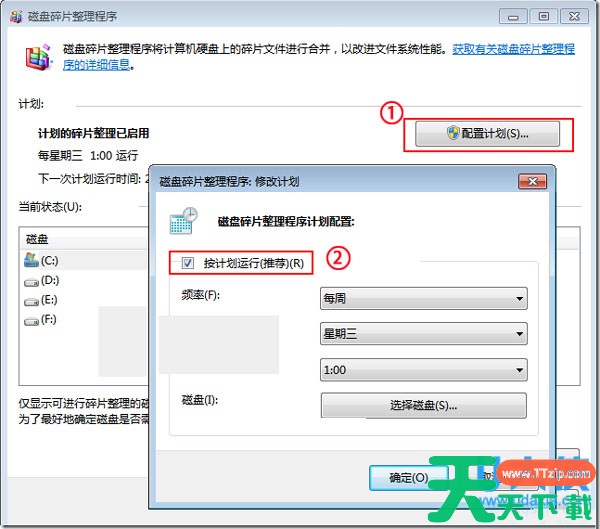 我们使用电脑时都会对磁盘进行磁盘碎片整理,也是经常会使用到的一个操作。而定期整理磁盘碎片,可以让我们的电脑运行的更加快速。但是,现在Win7系统中系统默认设置了磁盘碎片整理计划,有些用户不想按照系统的默认设置进行整理,该怎么办呢?下面,天天下载Ttzip就给大家分享win7磁盘碎片整理的开启取消方法。