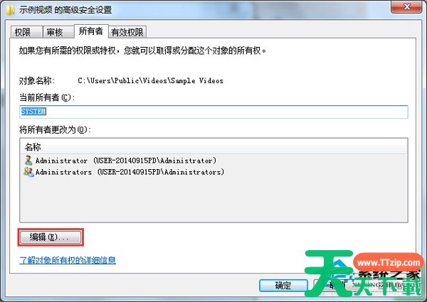 1、单击要更改权限的文件夹右键,依次选择属性——安全——高级——所有者——编辑 ,单击要更改权限的文件夹右键,依次选择属性——安全——高级——所有者——编辑 ,把当前所有者变更为正在登录的用户,并确认。
