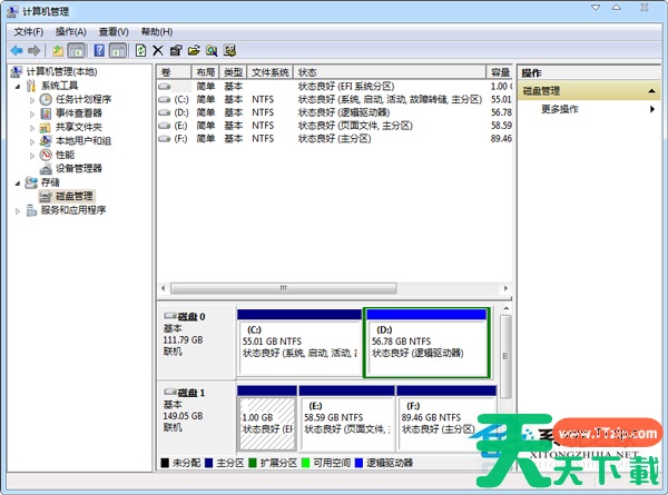 1、右击“计算机”-“管理”-“磁盘管理”,在右边窗口上能找到你电脑的所有分区。