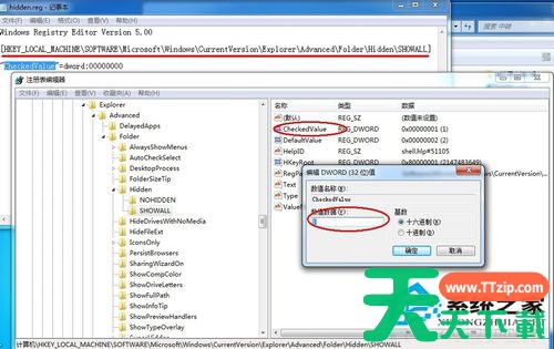 2、按路径:[HKEY_LOCAL_MACHINESOFTWAREMicrosoftWindowsCurrentVersionExplorerAdvancedFolderHiddenSHOWALL]找到该注册键。