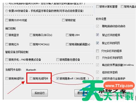 6、运行该软件,在程序主界面中,勾选“禁用有线网卡”项。