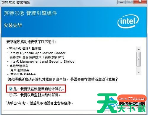 14、根据需要,选择是否重启计算机,然后单击“完成”: