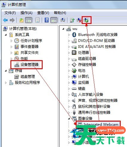 3、单击“设备管理器”,然后选择图像设备下的摄像头设备,单击上方的“启用”按钮: