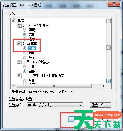 3、找到活动脚本,并选择“禁用” 。点击确定,关闭窗口。OK,我们就可以通过浏览器来屏蔽广告了。