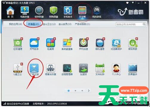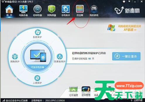2、打开金山毒霸,进入百宝箱窗口。
