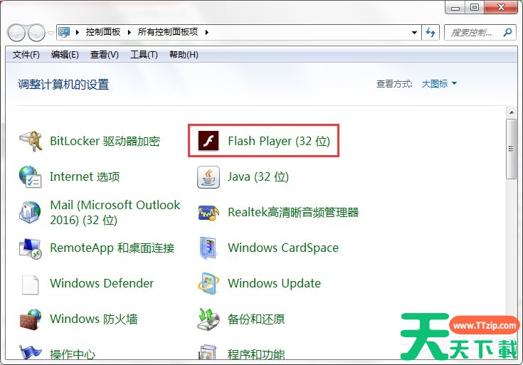 1、从电脑的“控制面板”中找到“flash player”并点进去;
