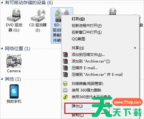 当然,也可以直接右击“我的电脑”中对应光驱盘符选择“弹出”操作来实现同样的操作。