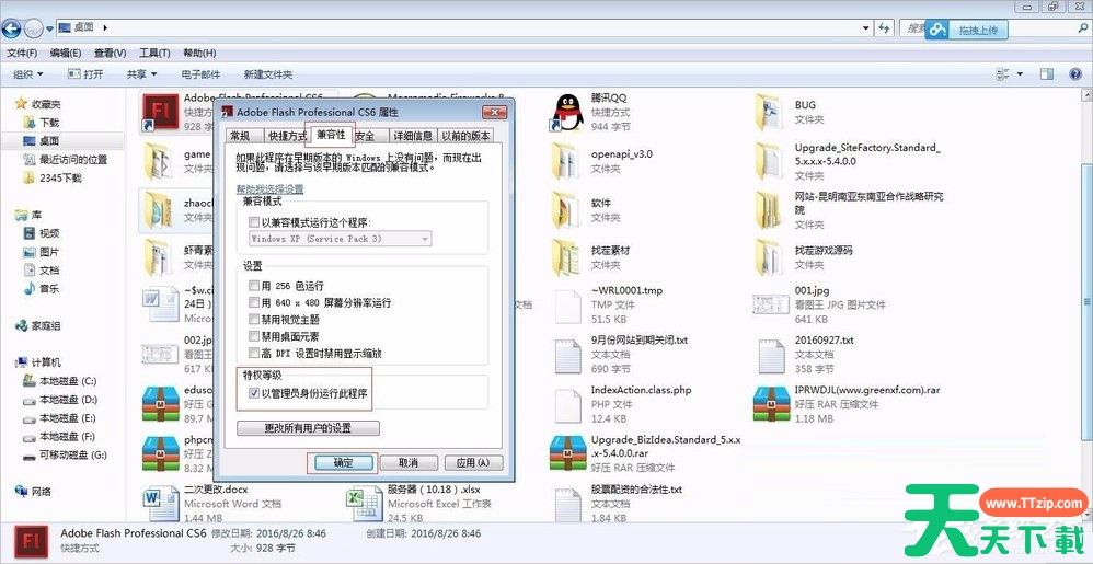 ②设置兼容性-特级权限-勾选以管理员身份运行此程序。如图: