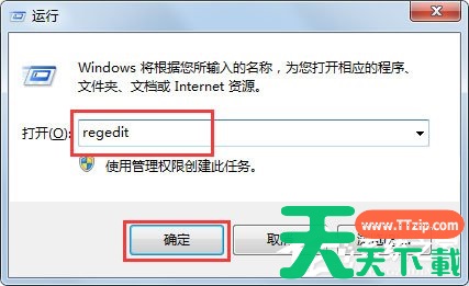 2、进入“运行”对话框后,输入regedit命令,确定,打开注册表;