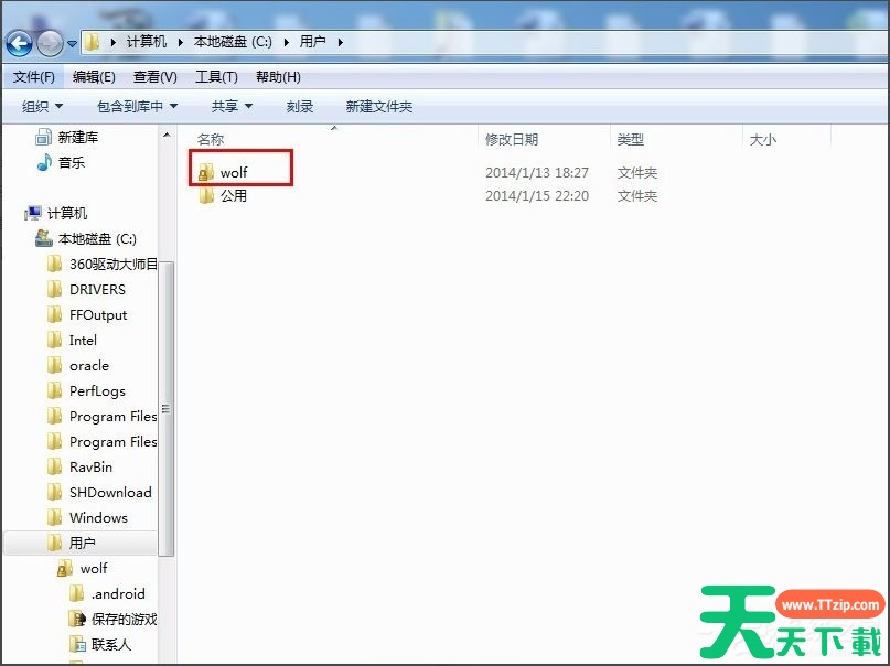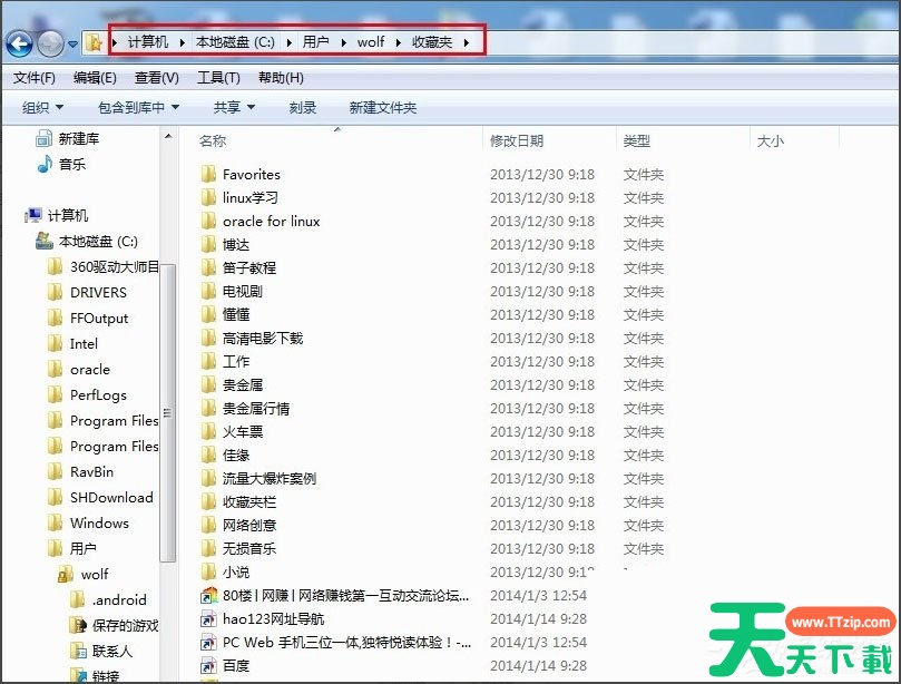 1、计算机C盘->用户->wolf(用户名)—>收藏夹。