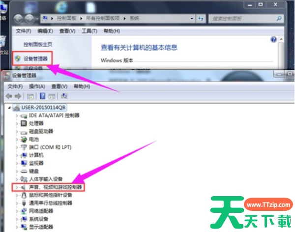 1、打开设备管理器,检查声音、视频和游戏控制器,有没有出现黄色叹号。打开方法:右键点击我的电脑-属性-硬件-设备管理器。