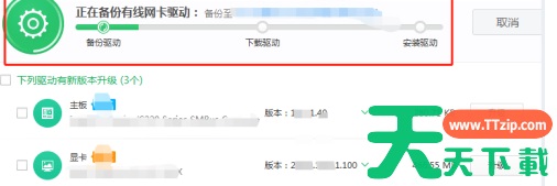 5、点击升级后会出现如图所示正在备份的界面,备份完成后软件就会自动下载驱动、安装驱动。