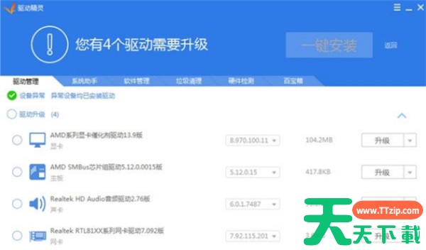 3、点击驱动检测后会出现如图所示的界面,我们可以在该界面中看到我们电脑中需要更新的驱动程序。