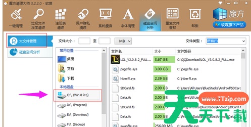 单击Large File Management并选择C盘。